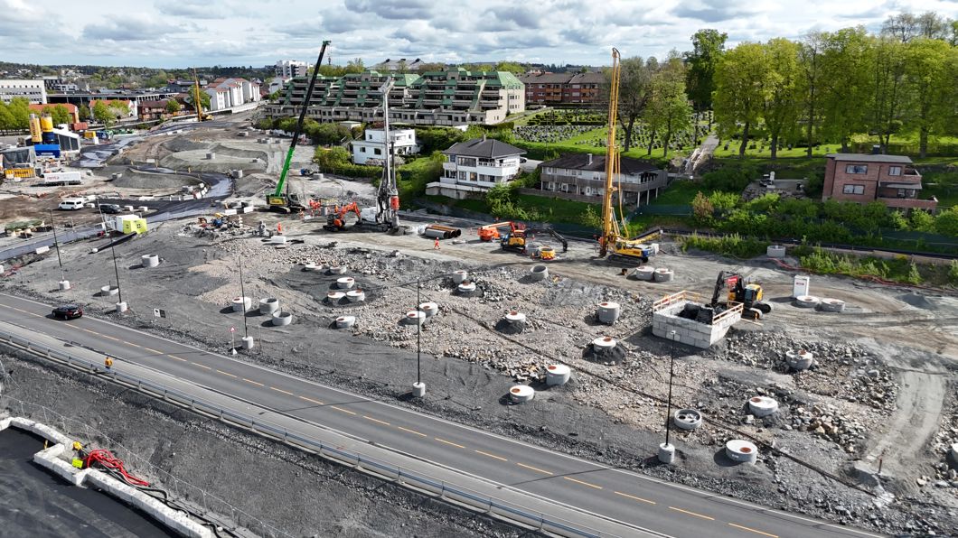Mandag 29. september starter Bane NOR arbeidet med å installere pilarene som utgjør hoveddelen av den permanente støttekonstruksjonen på oversiden av Fjordveien.