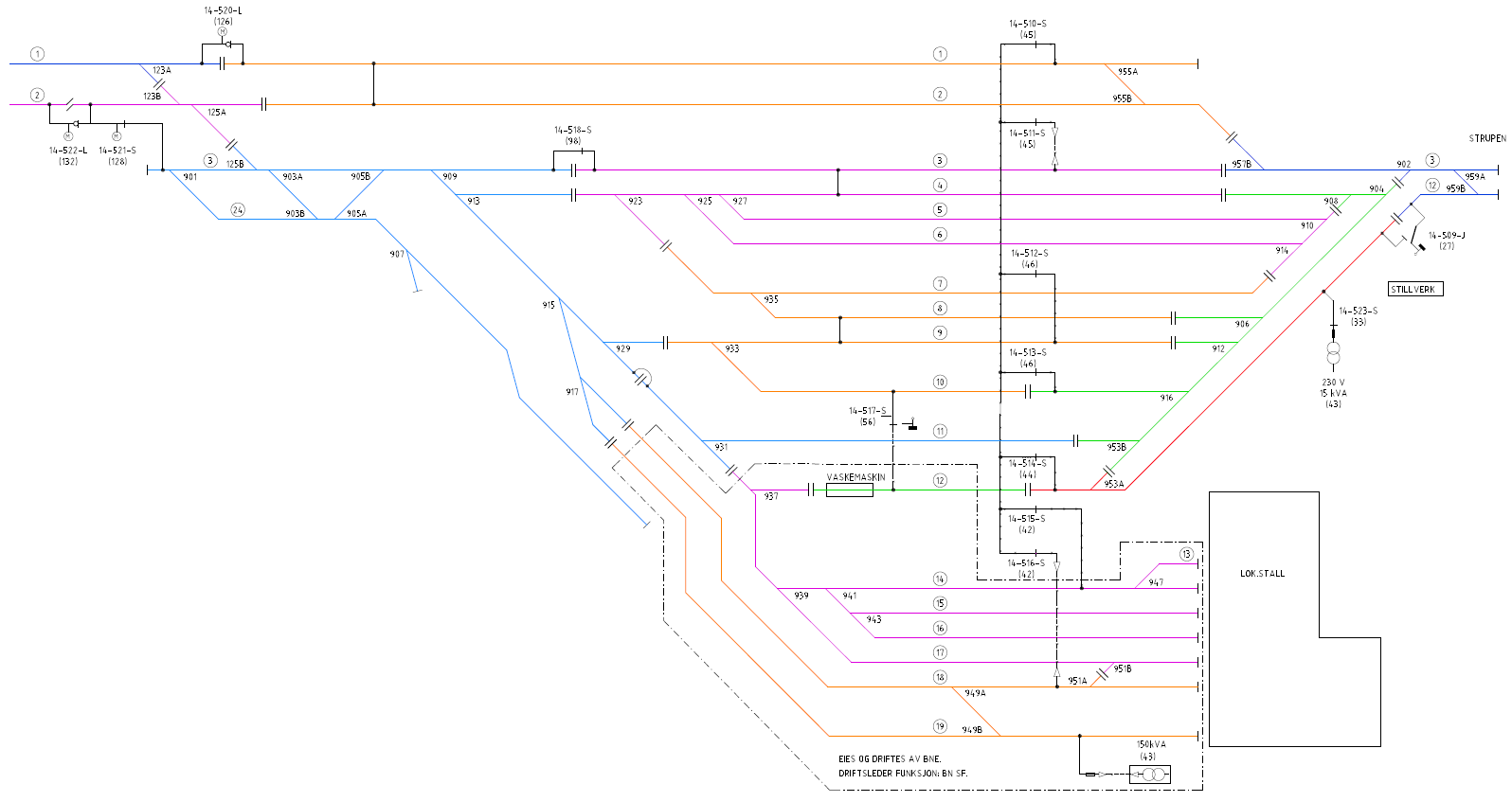 Bane Nor Eiendom eier og drifter deler av anlegg som vist innenfor stiplet på koblingsskjema