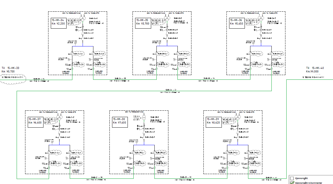 BESKRIVELSE:Vestfoldbanen: Spenningssetting av 15-HK-34, 15-HK-35 og 15-HK-36.