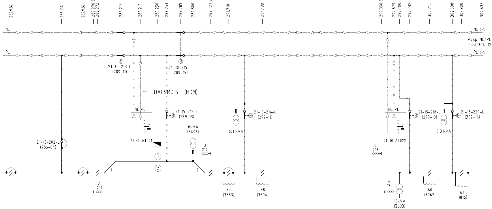 Det informeres om idriftsettelse av AT system mellom Helldalsmo stasjon km 289,458 (mast 289-22) og (Herefoss) km 304,635 (mast 304-12) med tilhørende brytere og AT-trafo.