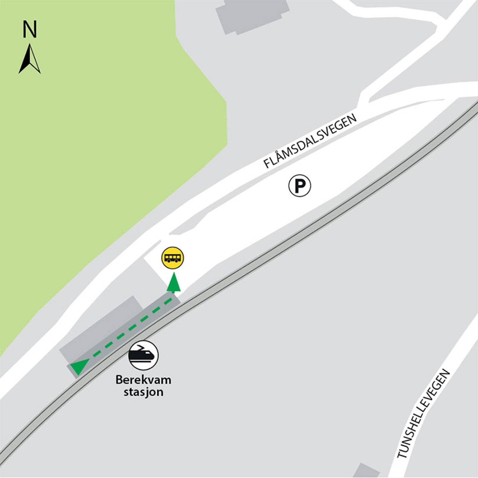 Berekvam stop is unattended and is located on Flåmsbana line in Aurland municipality. Train directions to Flåm, Myrdal, Oslo S and Bergen.