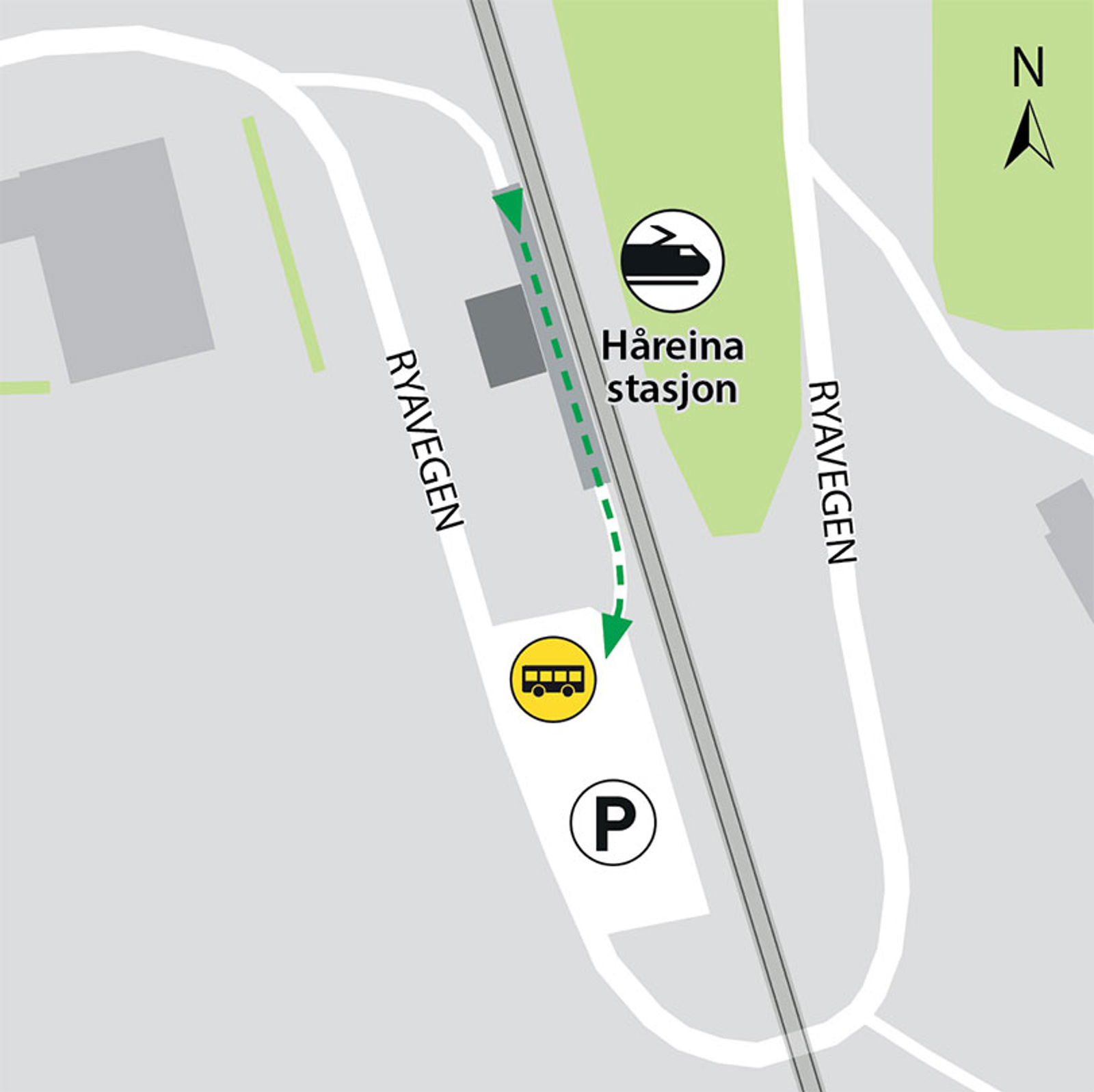 Rail replacement service departs from bus stop Håreina station.