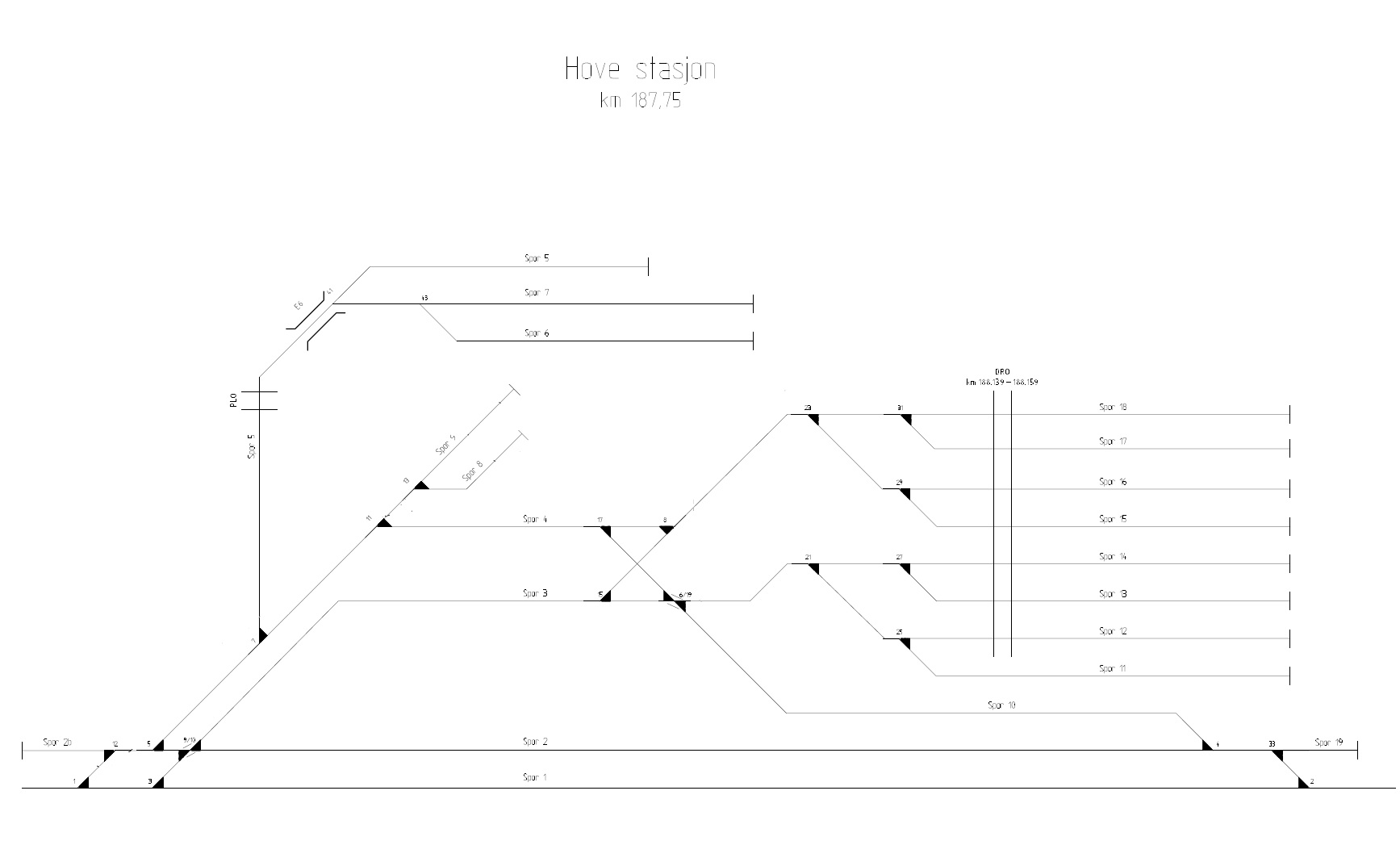 Sporplan for Hove stasjon.
