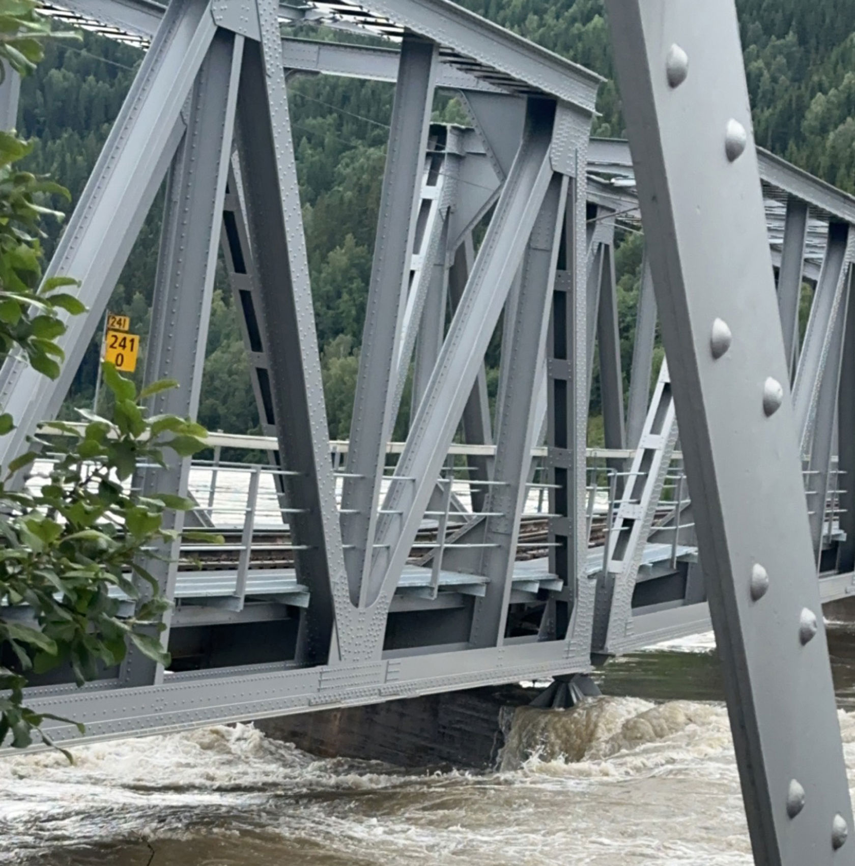 På Dovrebanen har togbrua over elva Lågen mot Ringebu vestside flyttet på seg. Det er mye vann i elva og store krefter på gang. Togtrafikken forbi Ringebu har vært stengt siden mandag og den forblir stengt inntil videre.