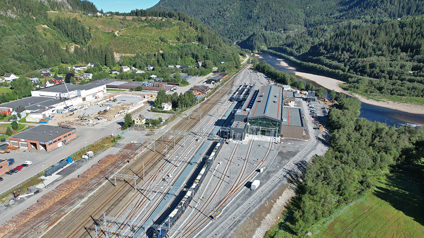 Nye Støren verksted viser muskler: laserstyrte jekker kan løfte 280 tonn tog nesten to meter over bakken for vedlikehold.