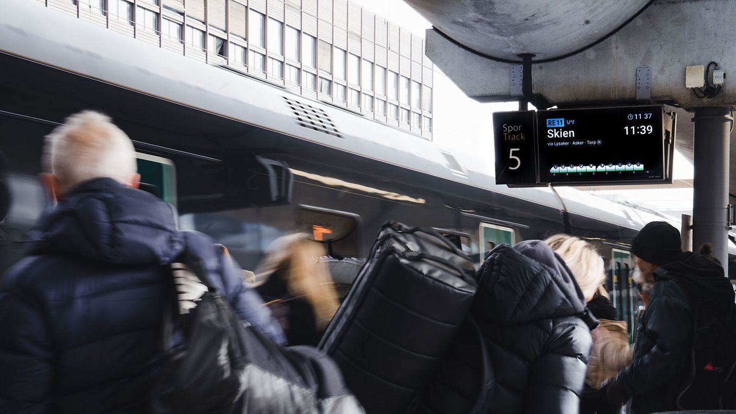 Her finner du blant annet informasjon om trafikkmeldinger, planlagt og pågående arbeid i sporet, parkering og informasjon om toglinjer og stasjoner.