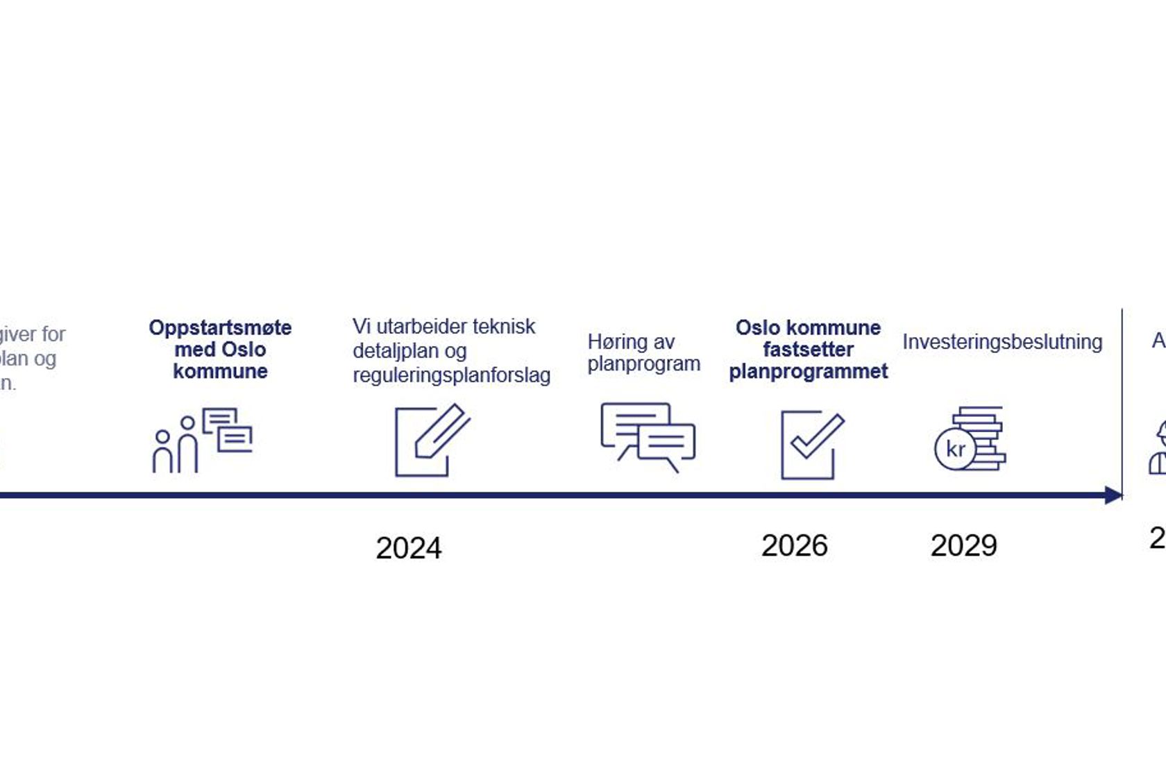 - Prosjektet inn i byggeplan i parallell med investeringsbeslutning, som er forventet i juni 2029.