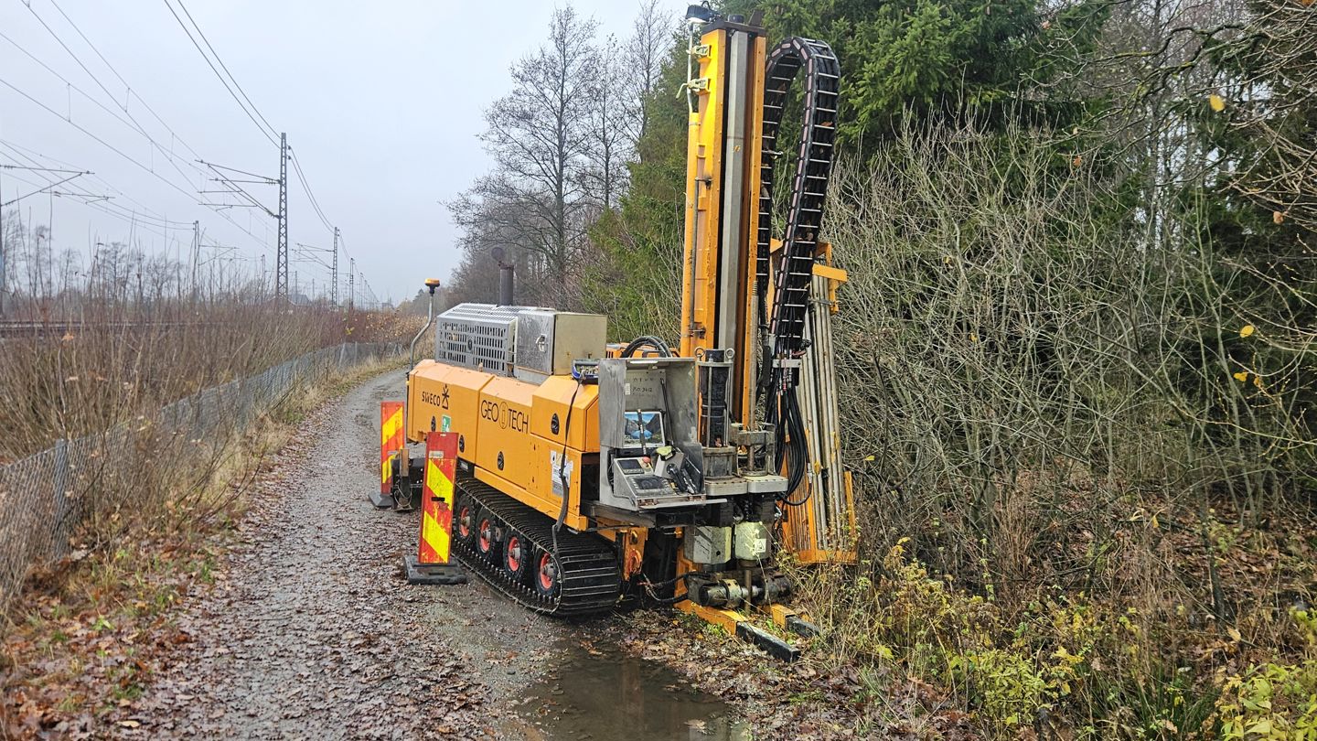 Vi er nå i gang med supplerende grunnundersøkelser i området der togparkeringsanlegget skal bygges ved Halmstad.