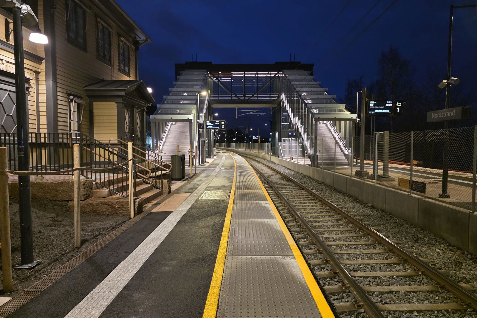 Det er etablert en ny overgangsbru mellom sideplattform og midtplattform. Brua har tak og heis. Stasjonen er bygget i tråd med prinsipper for universell utforming.