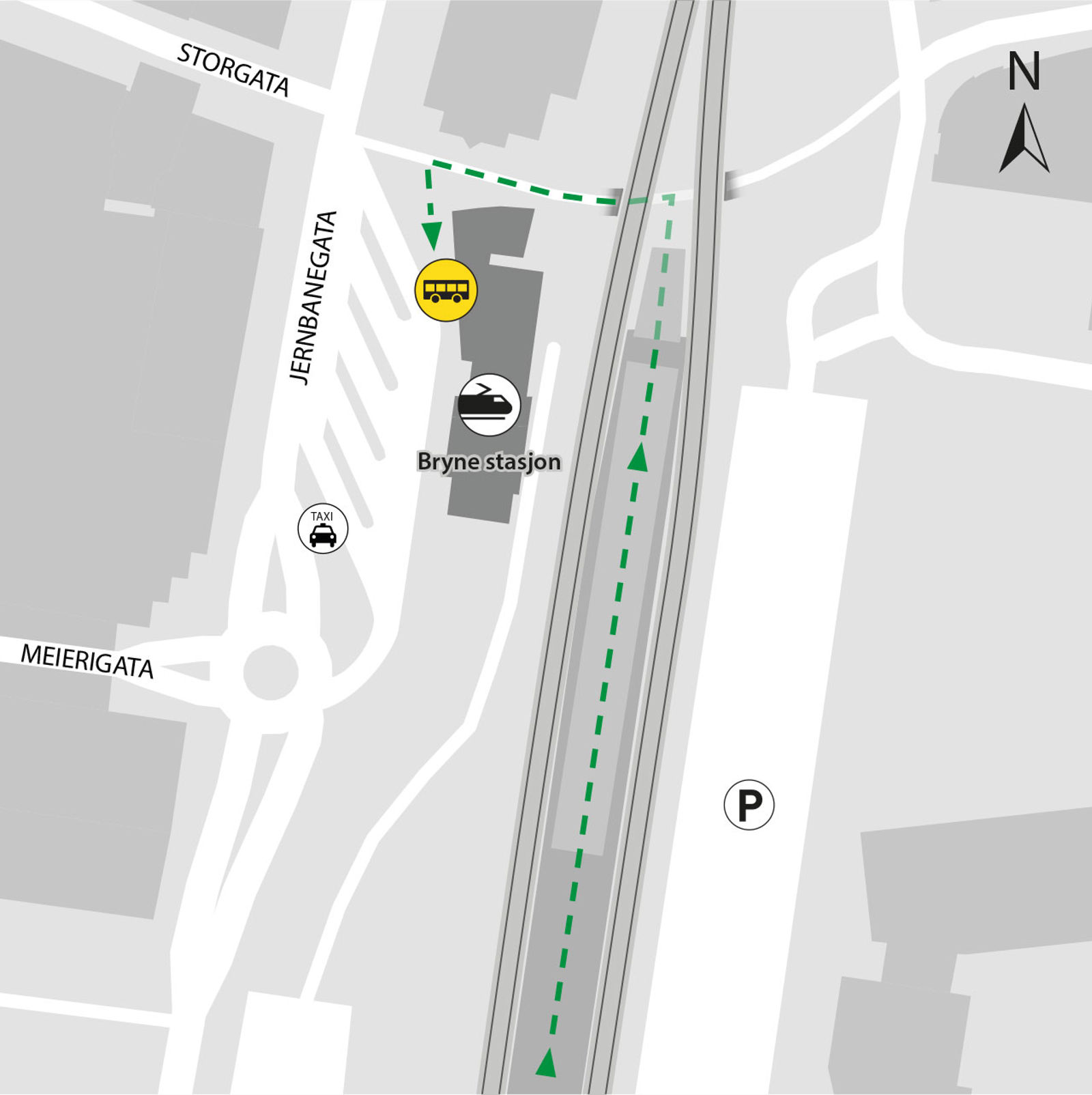 Bryne stasjon i Time kommune ligger på Sørlandsbanen og Jærbanen. Herfra kan du ta toget i retning Stavanger, Egersund, Kristiansand, Oslo S og Arendal.