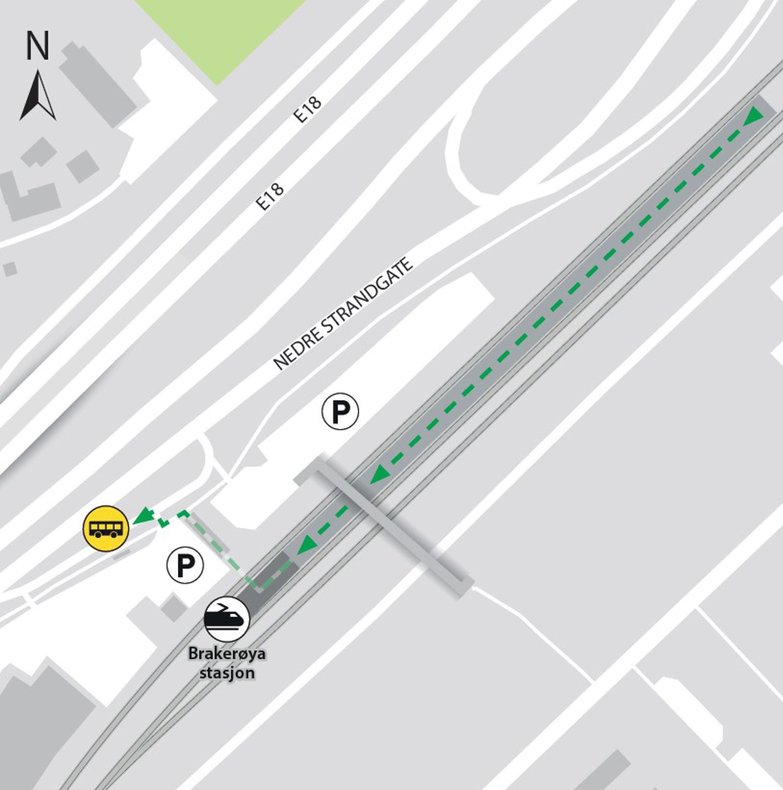 Brakerøya stasjon i Drammen ligger på Drammenbanen. Herfra kan du ta toget i retning Oslo S, Drammen og Dal.