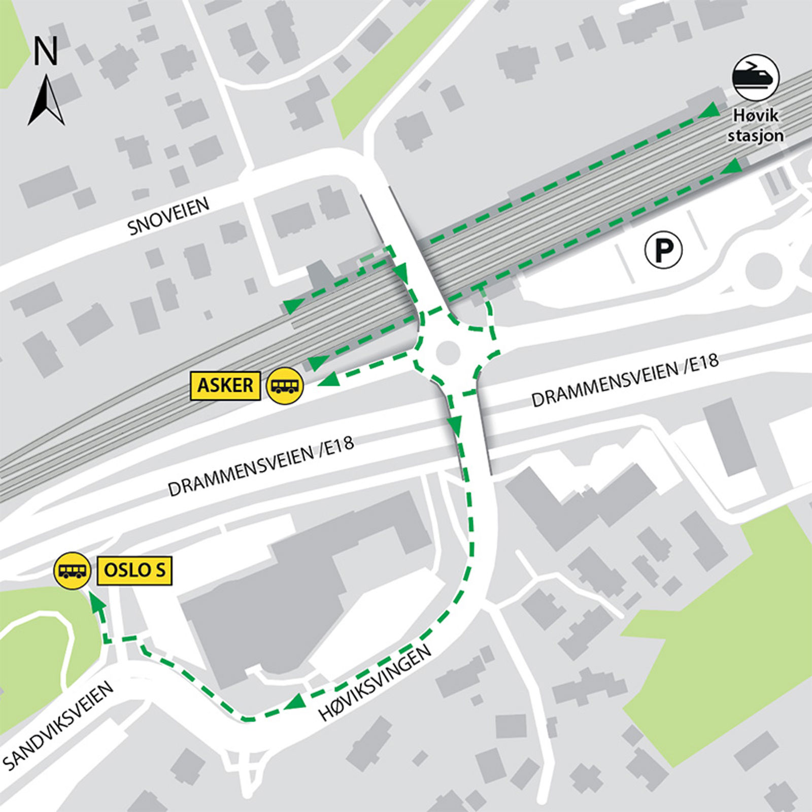 Ved avvik i togtrafikken settes det ikke opp egen alternativ transport. Benytt Ruters kollektivtilbud. Nærmeste Ruterholdeplasser