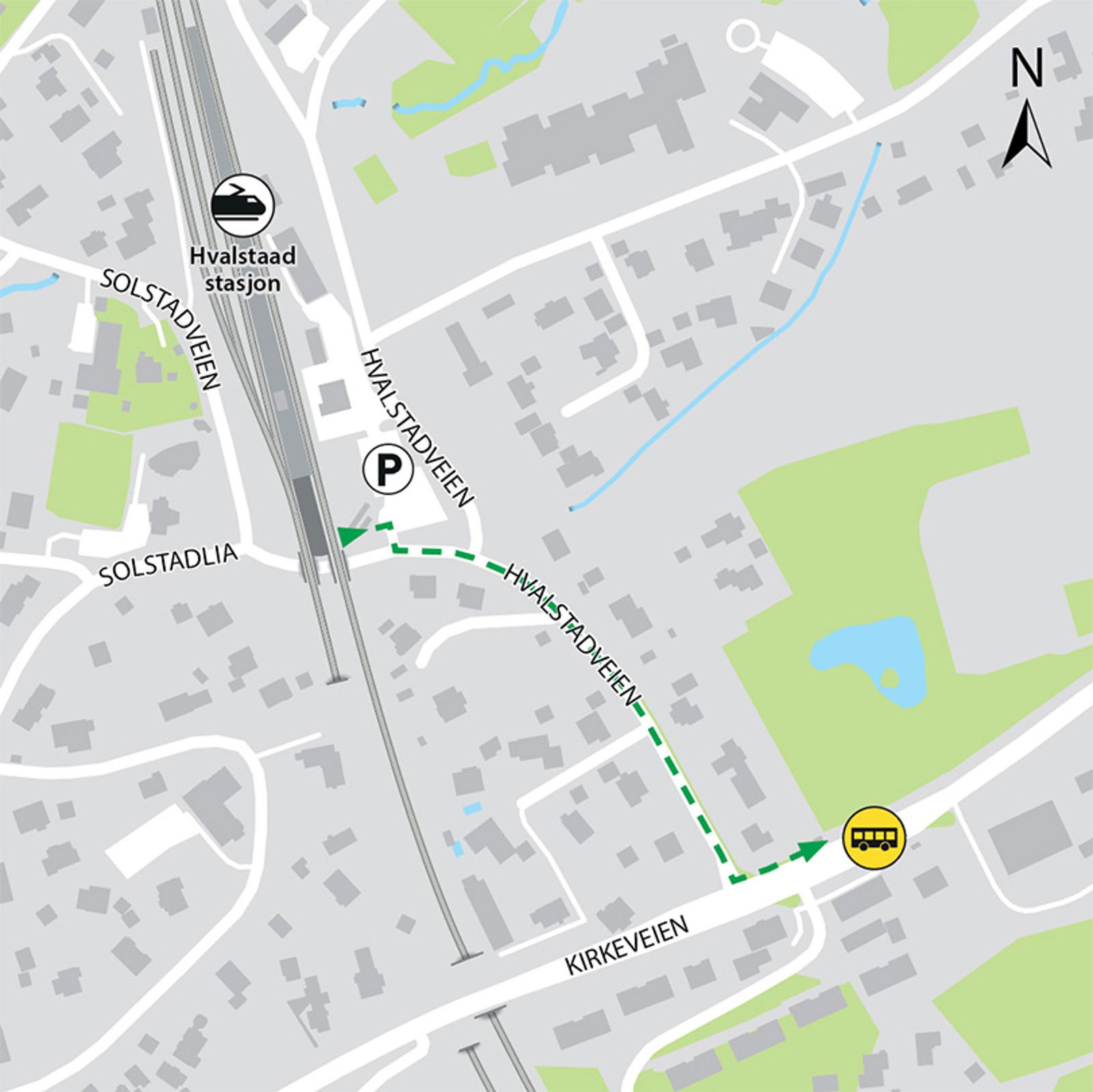 Ved avvik i togtrafikken settes det ikke opp egen alternativ transport. Benytt Ruters kollektivtilbud retning Asker og Oslo S. Nærmeste Ruterholdeplass er Hvalstad i Kirkeveien, gangavstand ca. 350 meter.