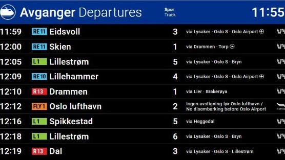 Fra: 10.01.2026 21:15Til: 11.01.2026 07:55Oppdatert: 24.10.2025 10:45Fra lørdag 10. januar kl. 21:15 til søndag 11. januar kl. 07:55 jobber vi mellom Skøyen og Spikkestad/Drammen, og mellom Oslo S og Rakkestad/Halden.